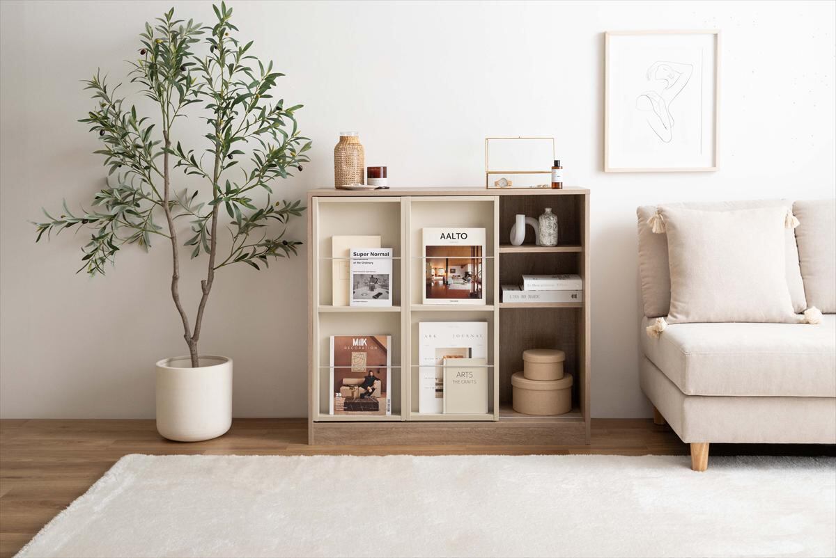 左右に動かすスライド棚で「隠す」と「見せる」が両立できる『Mysa(ミーサ)』スライド収納付き本棚ラック