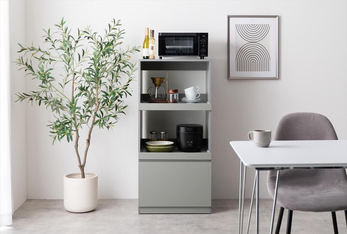 2つのスライドトレーでキッチン家電をスッキリ収納できる『Topu(トープ)』レンジ台
