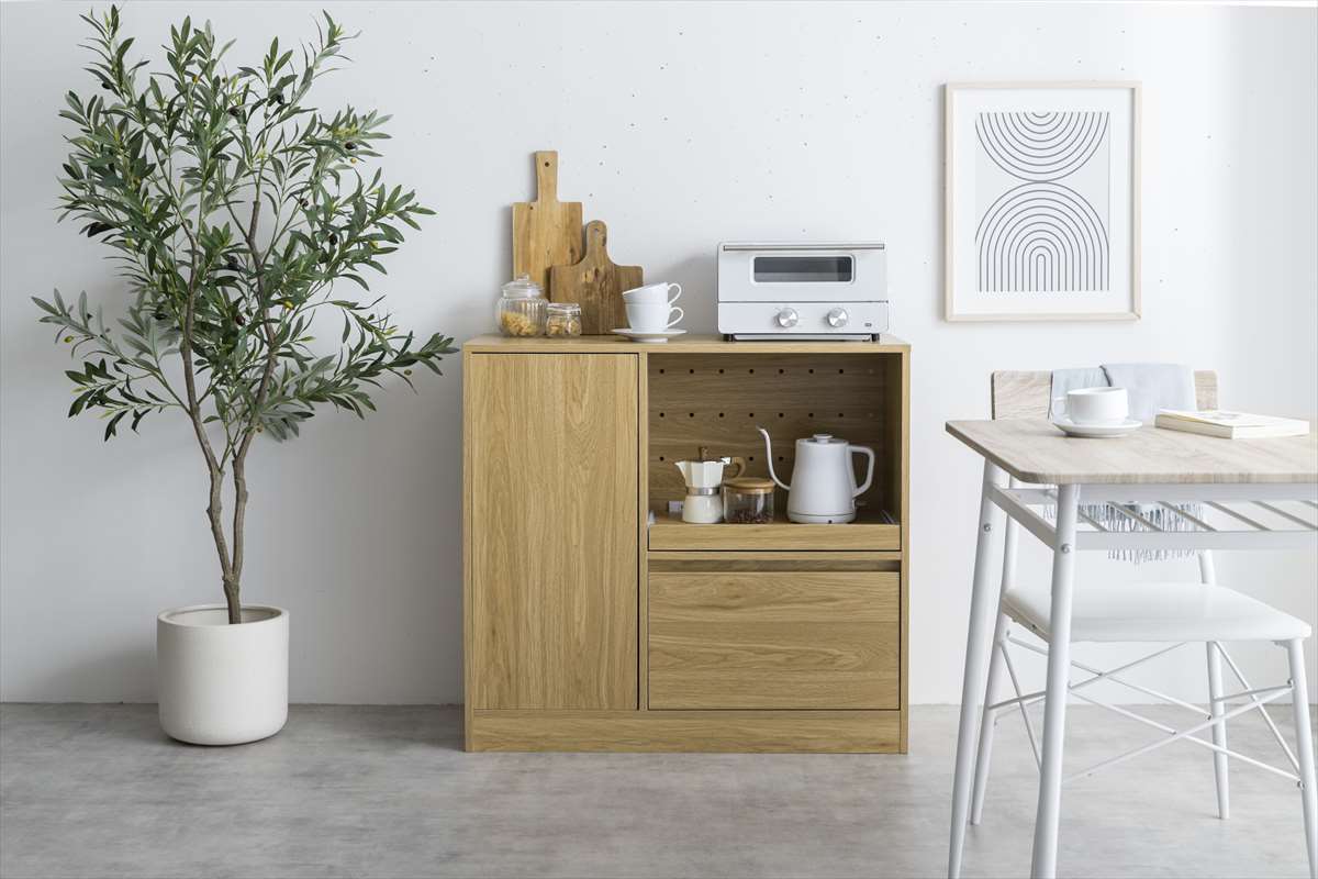 キッチン家電や食器・小物などをまとめて収納できる『Conina(コシーナ)』シリーズのレンジ台