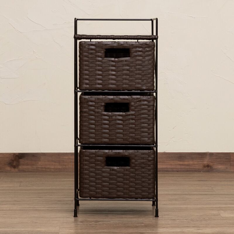 ラタン調 収納ラック 3段 BR/IV/CM/GY