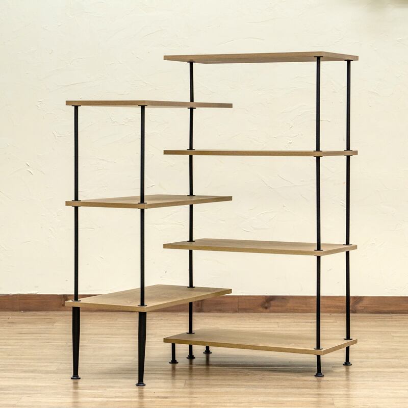 スリムなスチールフレームとヴィンテージテイストの木目調天板を組み合わせた、「見せる収納」を楽しむことができるオープンラック。