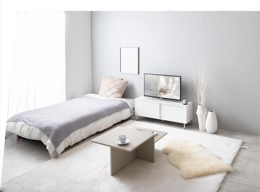 シンプルながらも洗練されたデザインで、空間にすっきり落ち着いた印象を与える『Putie(プティ)』テレビ台