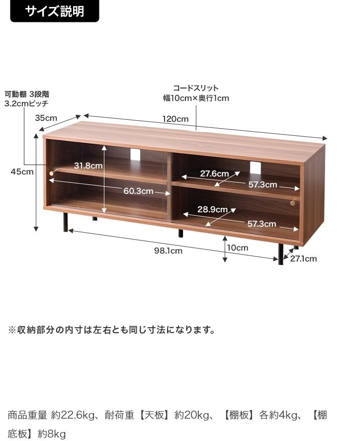 【耐荷重】天板:約20kg 、棚板:各約4kg、棚底板:約8kg