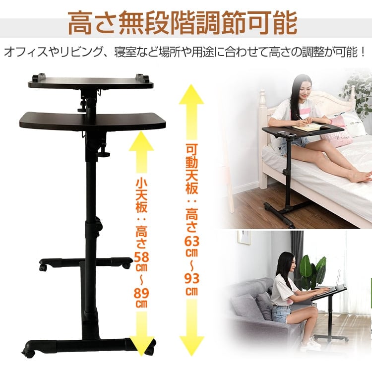 寝室・リビング兼用】昇降式回転デスク 折りたたみコンパクト設計 ベッドサイドPCテーブル