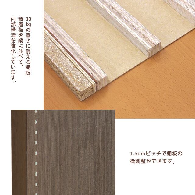 ●可動棚は1.5cmピッチなので、位置の微調整ができます。